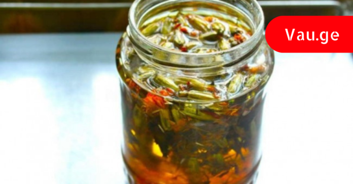 - 1 სუფრის კოვზ გამხმარ, დაქუცმაცებულ გვირილას დაასხით 20 სუფრის კოვზი მდუღარე წყალი,