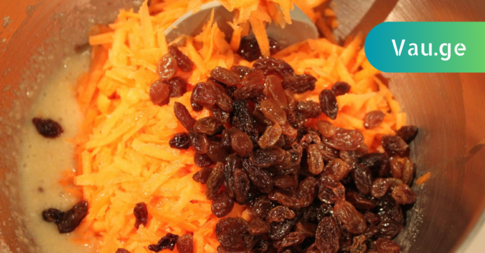 - დაუმატეთ 500 გ კარგად გარეცხილი ქიშმიში.