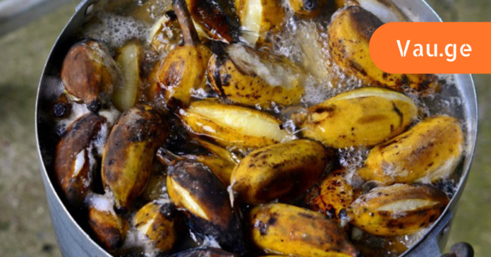 უბრალოდ უნდა მოჭრათ ბანანის ორი ბოლო (ზედა და ქვედა) და დარჩენილი ბანანი მოათავსეთ მდუღარე წყალში.
