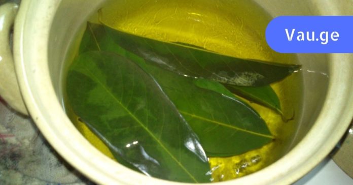 - ხუთ დაფნის ფოთოლს დაასხით მდუღარე წყალი და ადუღეთ დაბალ ცეცხლზე ხუთი წუთის განმავლობაში.